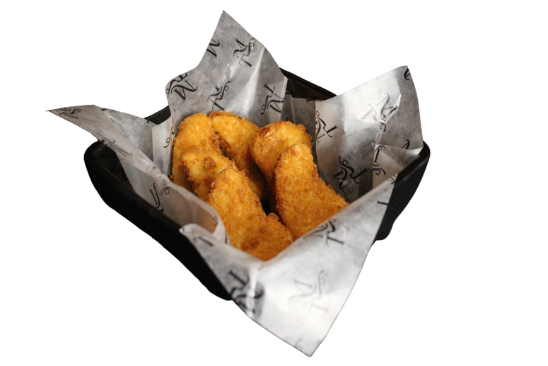 Pollo, Bocaditos de Queso Camembert, Lechuga y Mayonesa