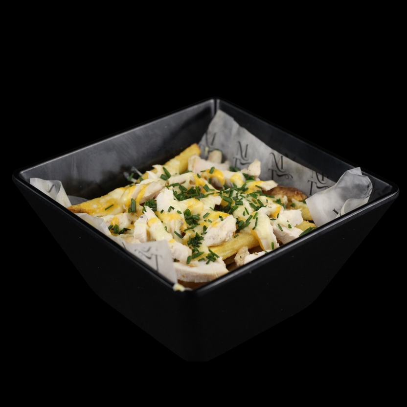 PATATAS FRITAS POLLO ASADO, CUATRO QUESOS Y CEBOLLINO