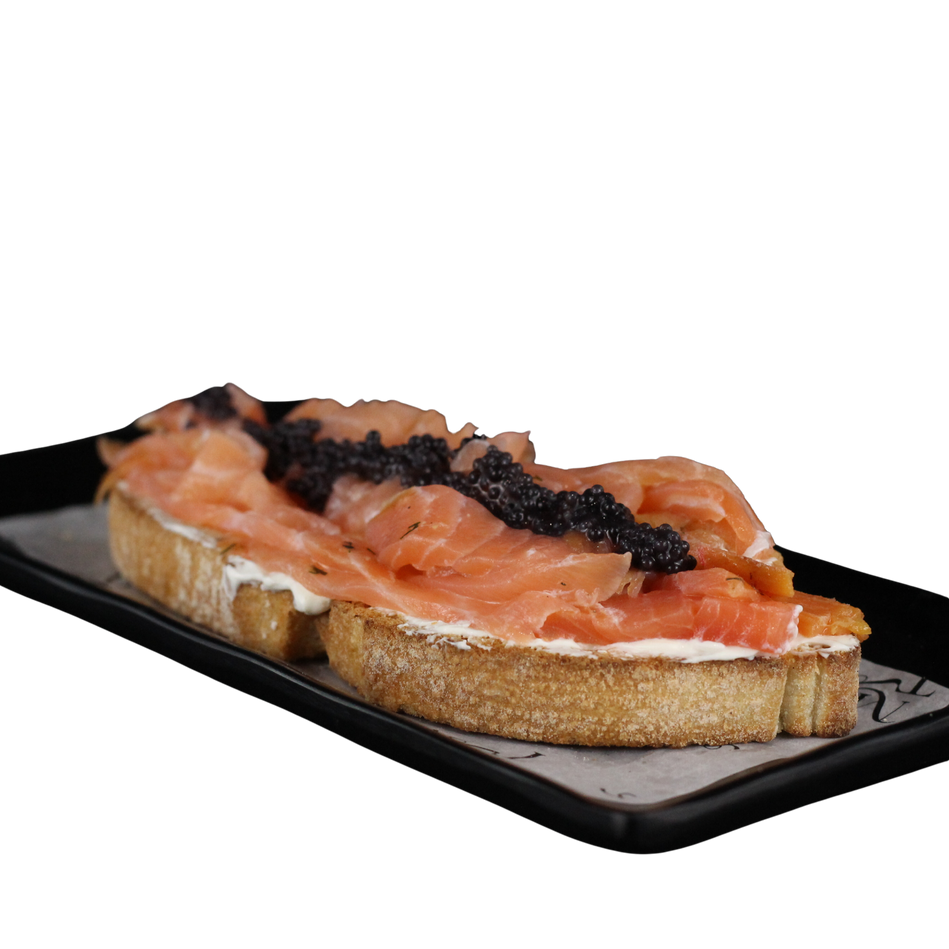 SALMÓN, CREMA DE QUESO Y HUEVAS DE PESCADO