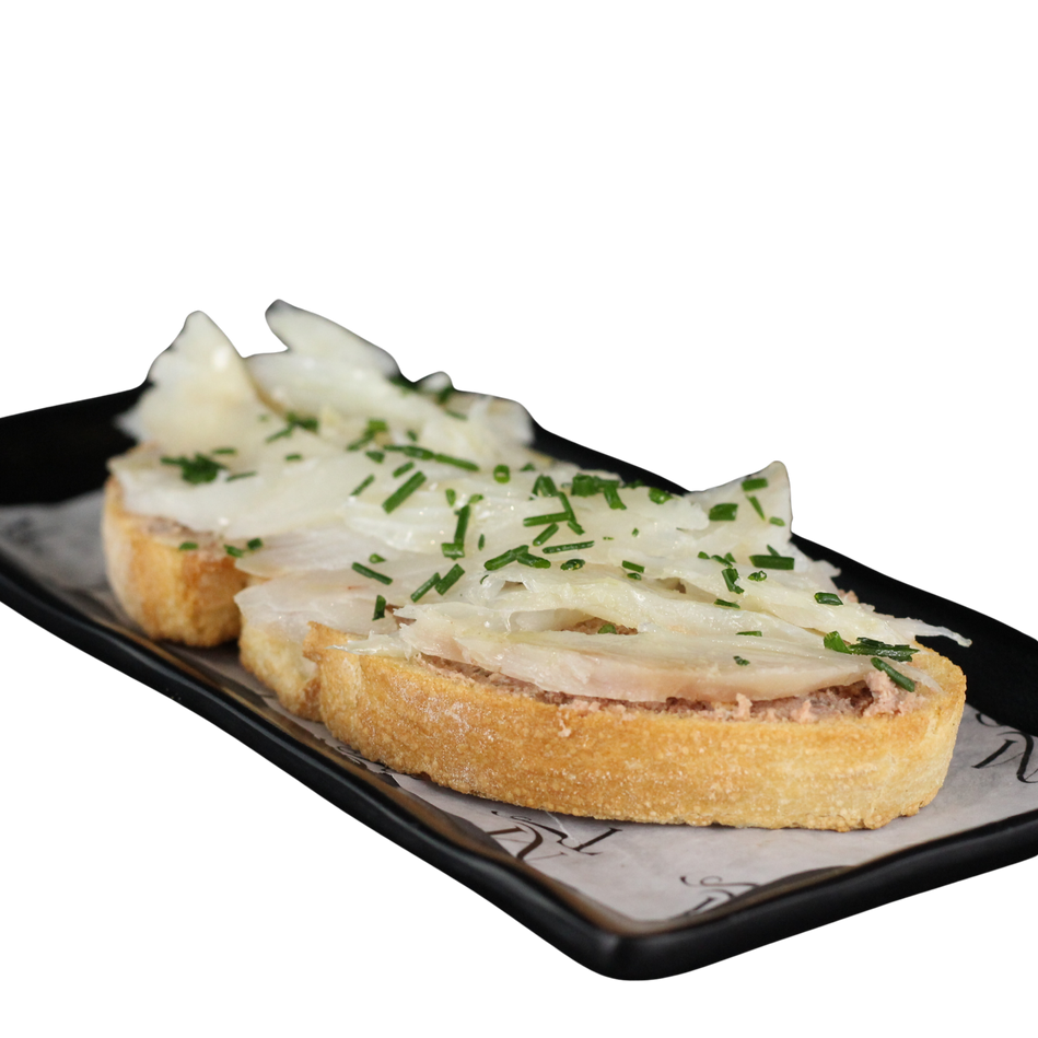 BACALAO, PATÉ DE PIMIENTOS Y CEBOLLINO