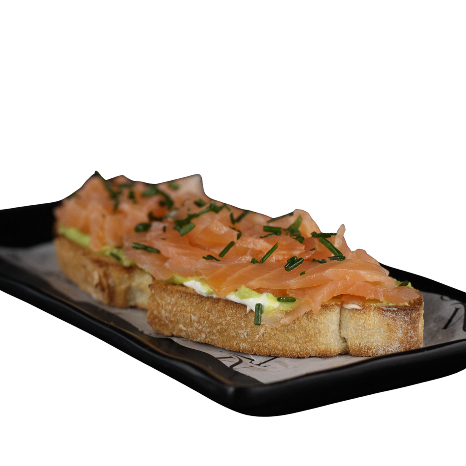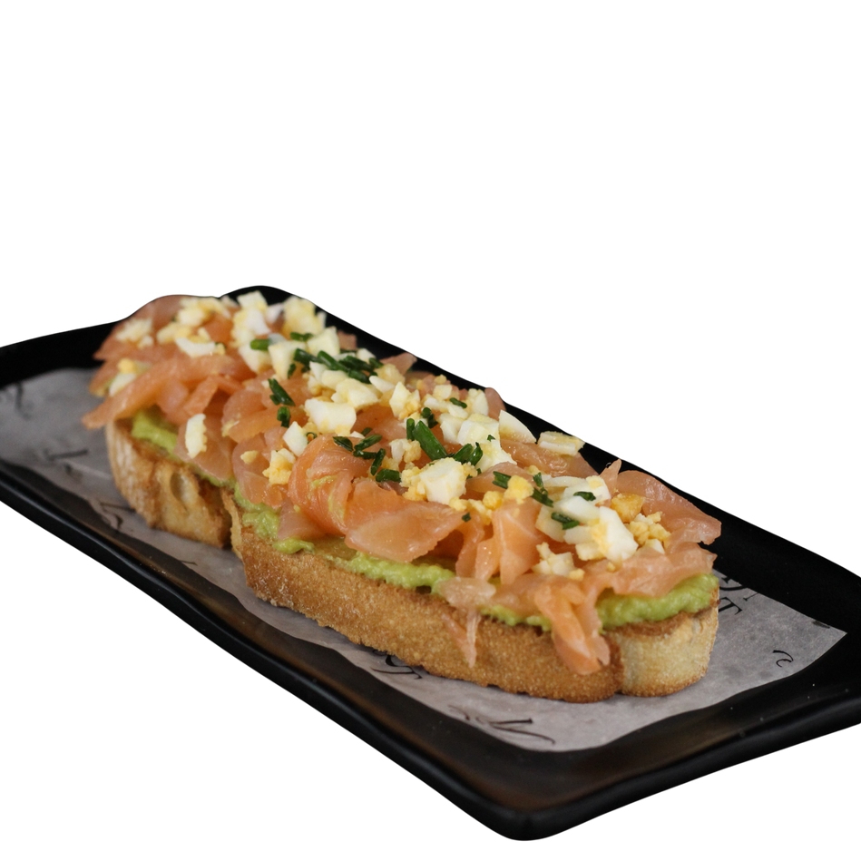 SALMÓN, GUACAMOLE, HUEVO COCIDO Y CEBOLLINO