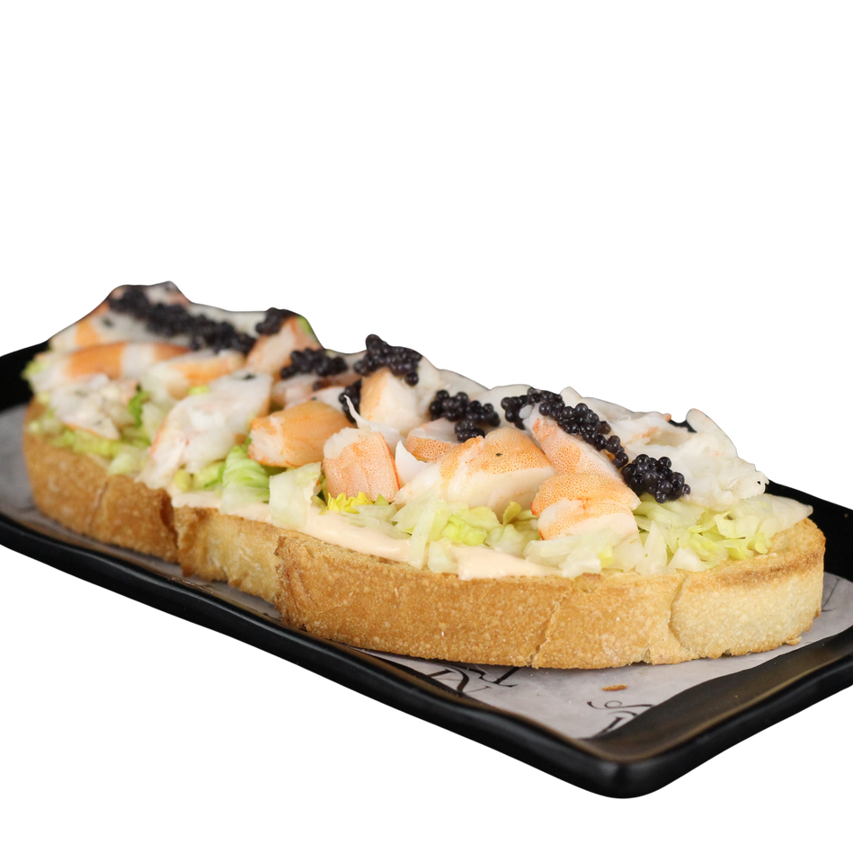 LANGOSTINO, LECHUGA, SALSA ROSA Y HUEVAS DE PESCADO
