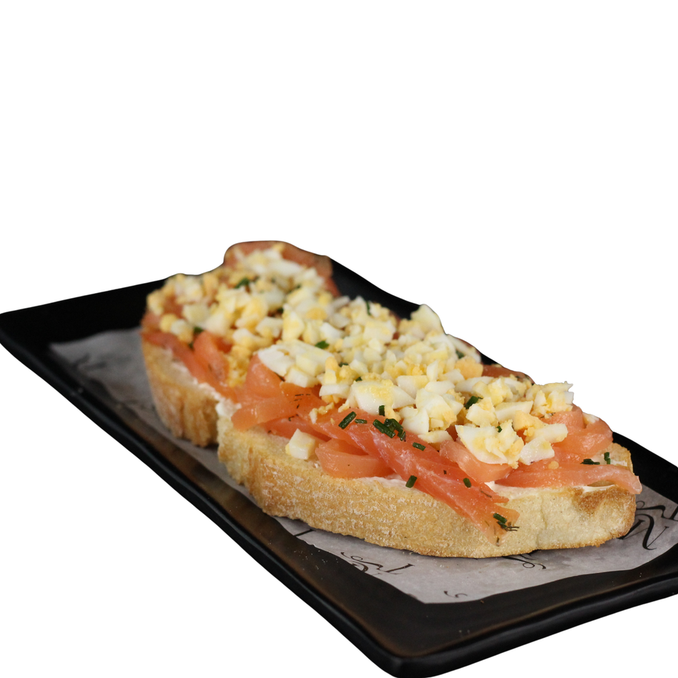 Salmón, Crema de Queso, Huevo Cocido y Cebollino